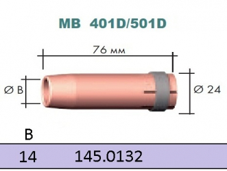 Газовое сопло, круто конічне D 14,0/76,0 мм MB 401 / 501 / D GRIP. Abicor Binzel.