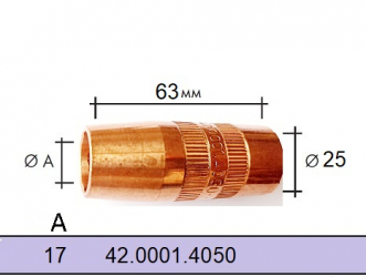 Сопло газове 17/25х63 СТ різьба М23х2 42.0001.4050