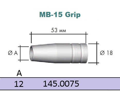 Газ. сопло, конічне D 12,0/52,0 мм МВ 14 / 15 GRIP 145.0075. Abicor Binzel.